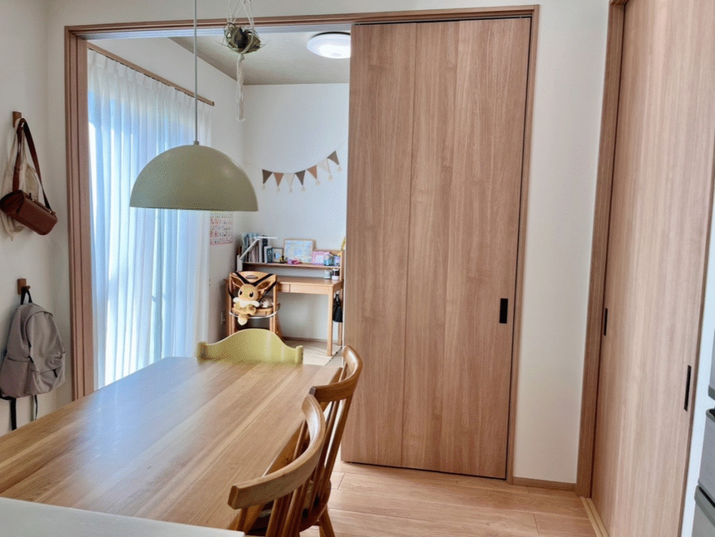 普段は開け放して家族と同じ空間に、集中したい時には引き戸を閉めて個室化できる、まさに“いいとこ取り”のスタイルです。
