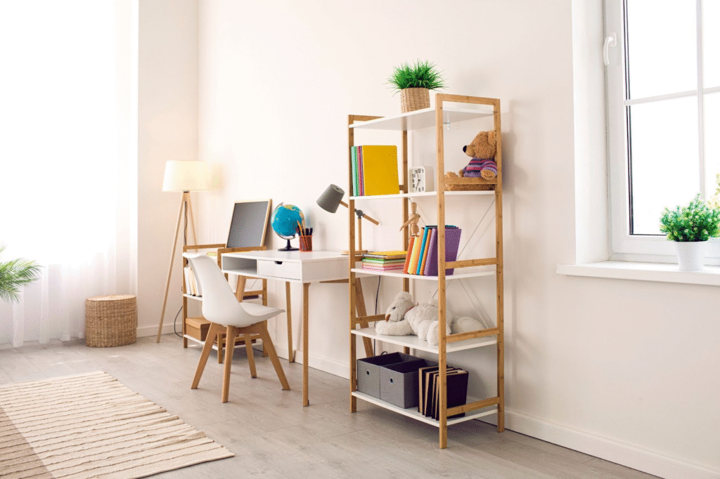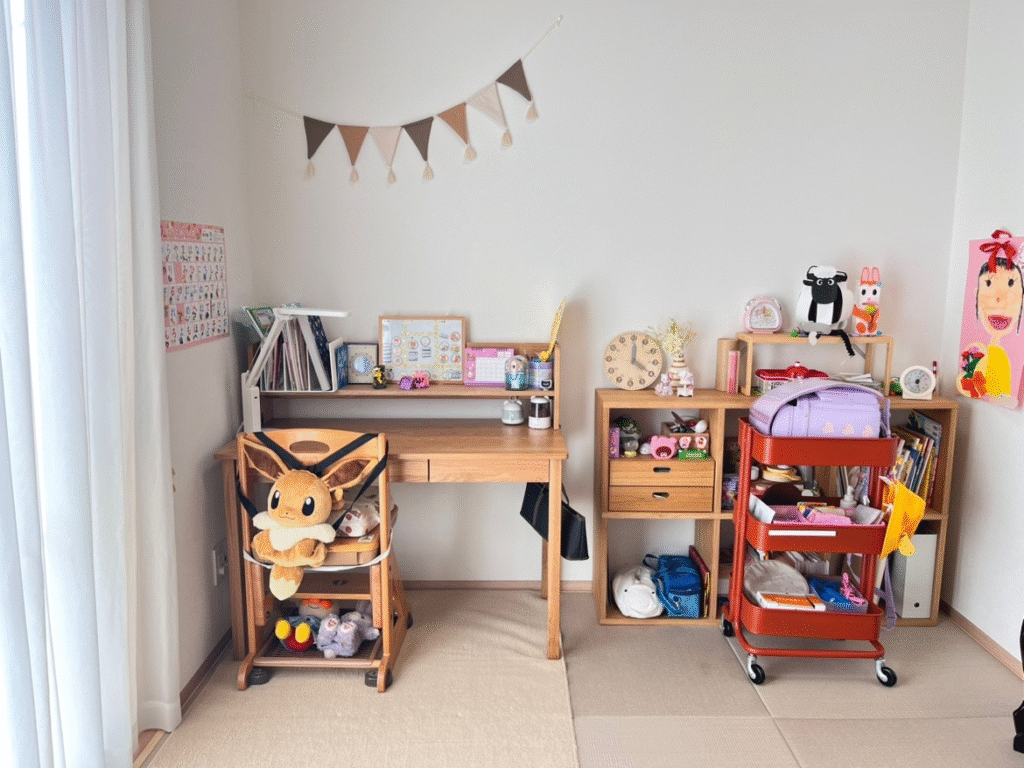 教材や文房具を出しっぱなしにしやすいので、収納アイデアが必要です。
