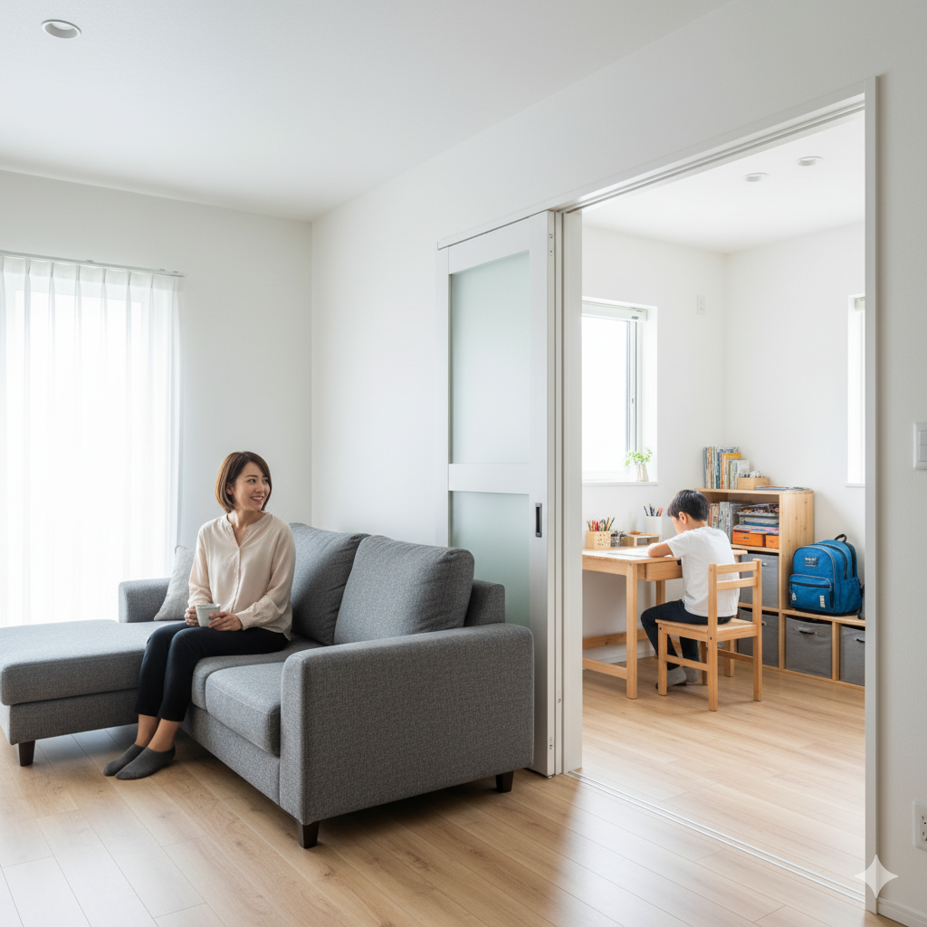 - 普段は開けて家族とつながり、必要なときだけ閉めて集中